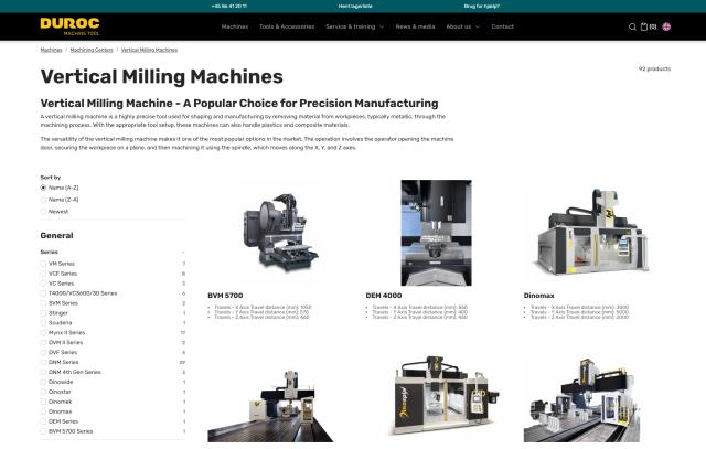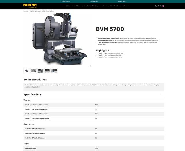 With the new website, Duroc Machine Tool can present their entire product range and complete offering in a much better way than before.
