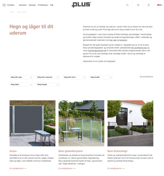 The platform is scalable in relation to language and product numbers and categories, so that it matches the ambitious digital ambitions of PLUS. Initially, the website is available in a Danish and a German version, supplemented by Norwegian and Swedish landing pages. But the solution can be scaled as needed.